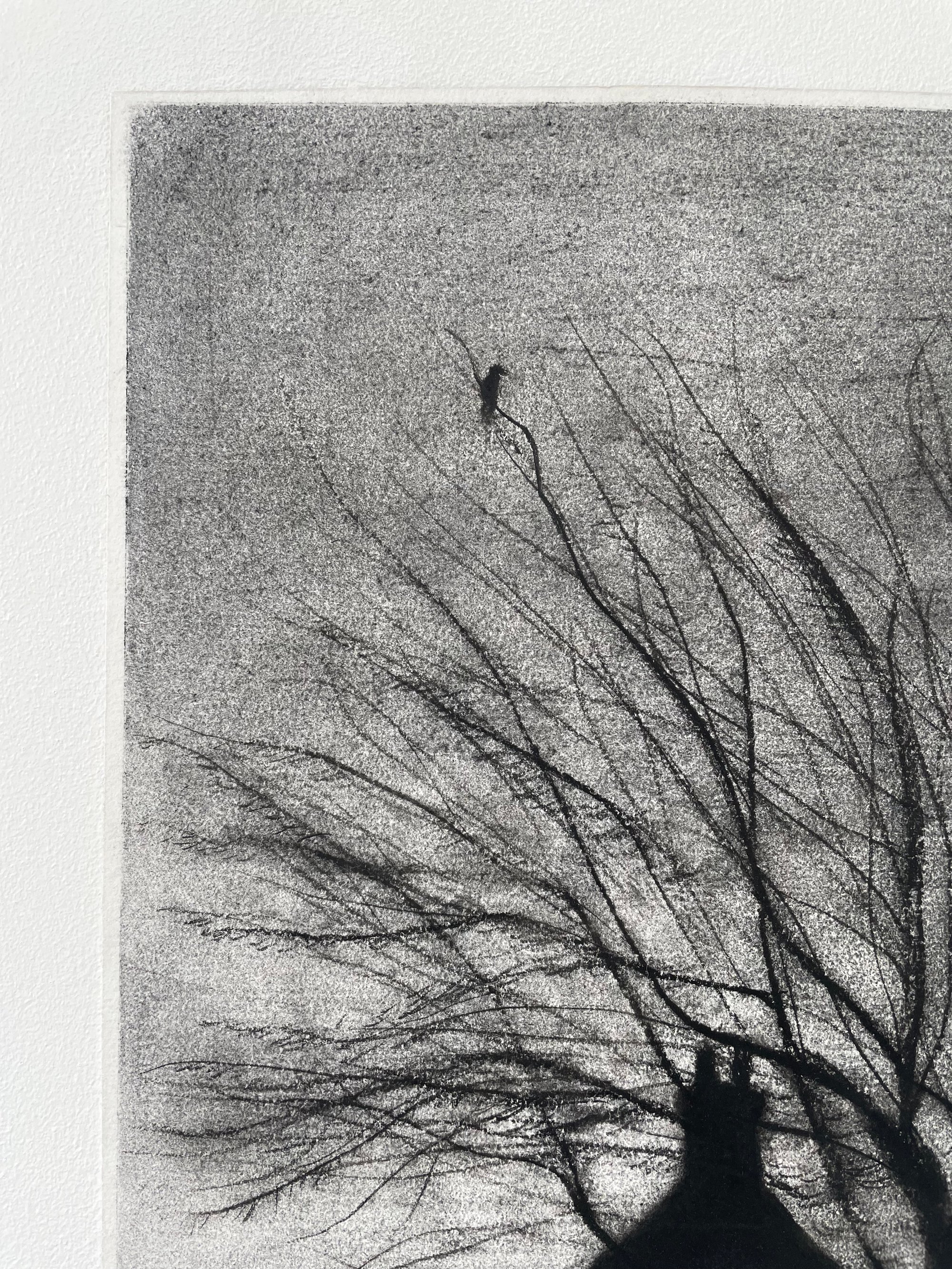 A charcoal drawing from a cloudy winter's day when looking up provided inspiration.